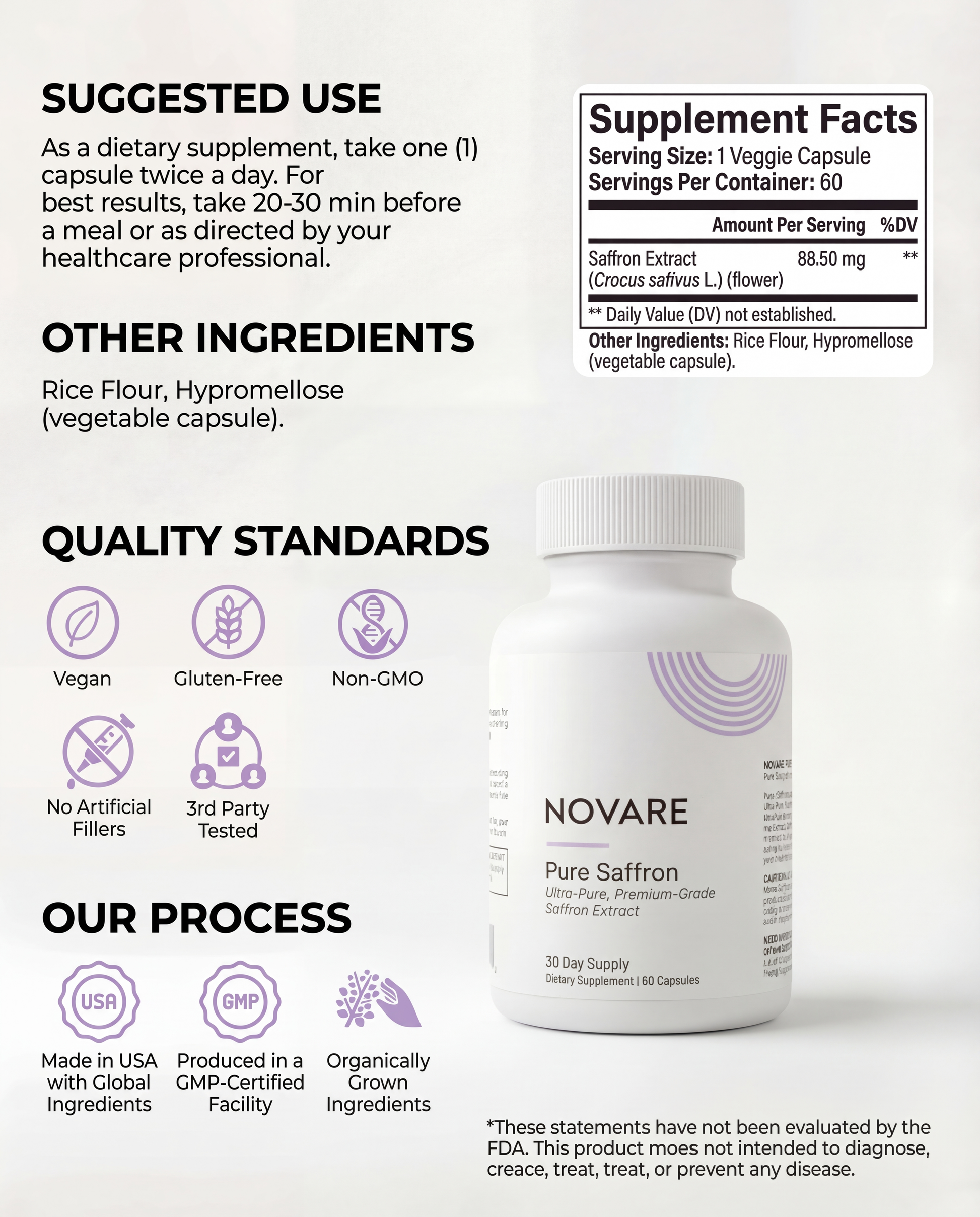 Novare Saffron provides a clinically studied saffron extract that supports these pathways naturally — helping your body regulate appetite and cravings at the source: